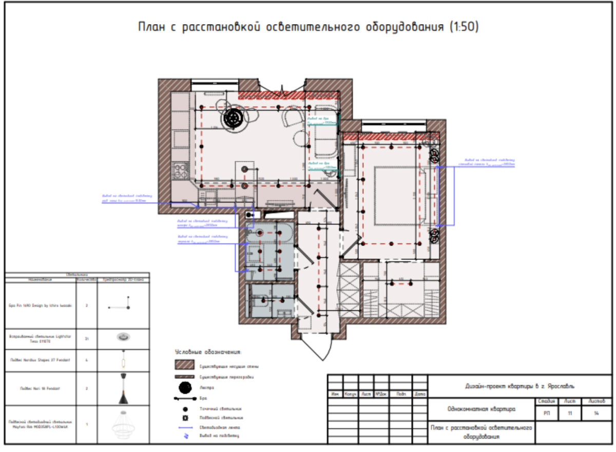 Планировка света на курсе ArchiCad для дизайнеров интерьера. Схема выполнена ученицей Александрой Брицкой.